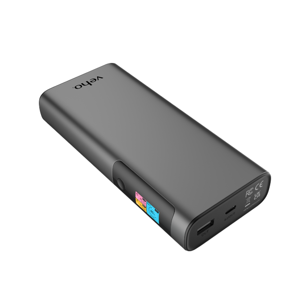 The Pebble PQ21 digital power bank for fast charging compatible devices with dual USB ports, charges multiple devices with up to 100W output. The Universal USB-C charging port (PD) fast charges most portable devices with up to 20V output (smartphones, tablets, mini notebooks, and laptops). Features intelligent, real-time status that gives you full control with data from both charging ports and remaining power. Designed and finished in a sleek brushed metal casing, for business and travel.