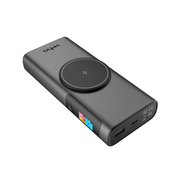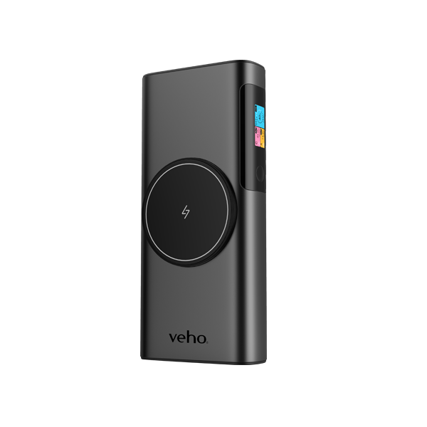 The Pebble PQ22 wireless digital power bank for fast charging compatible devices with dual USB ports, and a wireless charging pad, charges multiple devices with up to 100W output. The Universal USB-C charging port (PD) fast charges most portable devices with up to 20V output (smartphones, tablets, mini notebooks, and laptops). Features intelligent, real-time status that gives you full control with data from both charging ports and remaining power. Designed and finished in a sleek brushed metal casing, for business and travel.